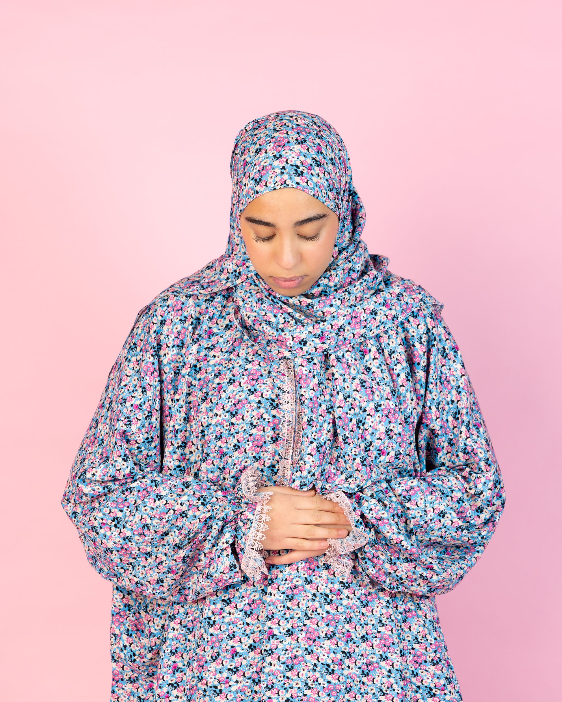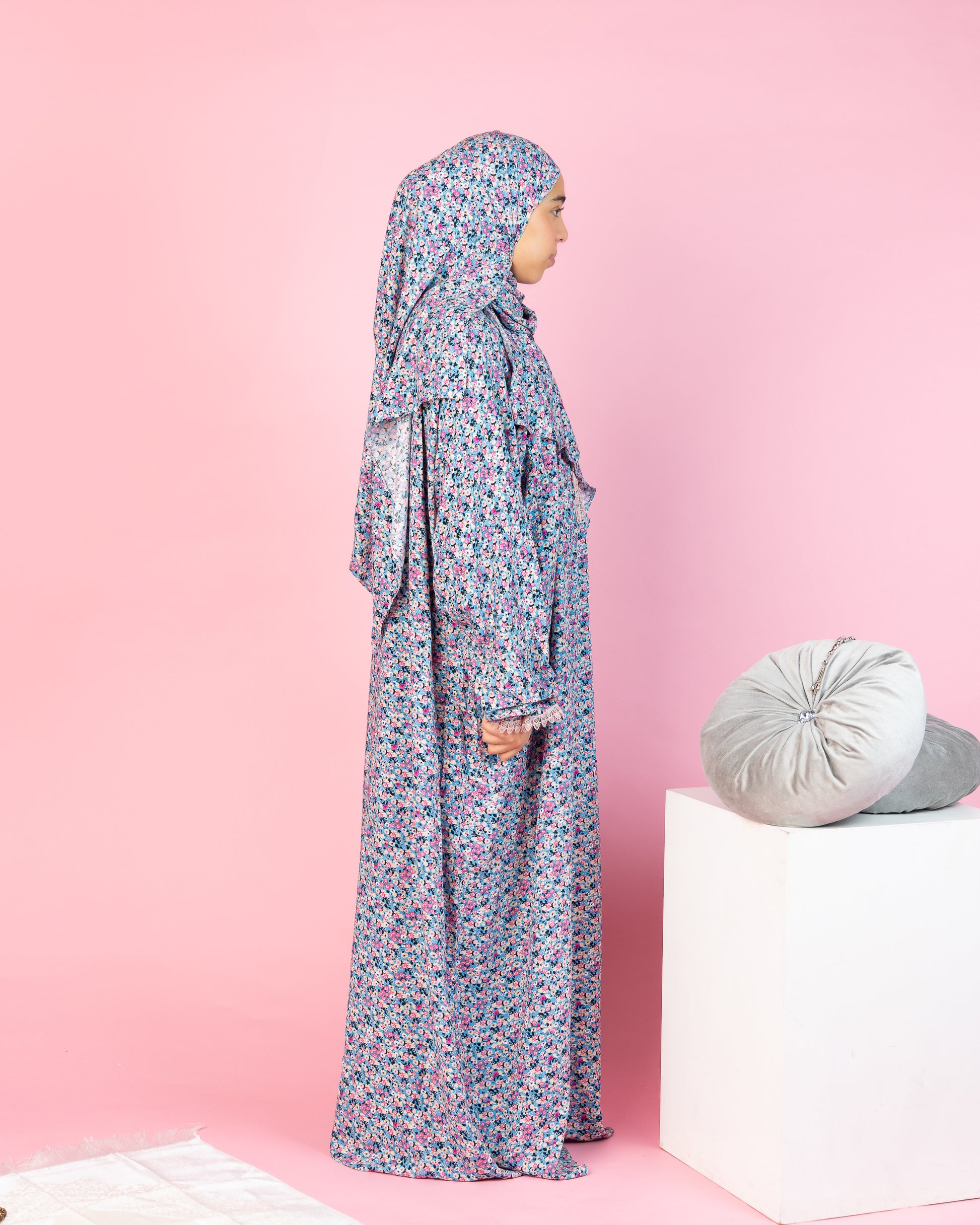 Elevate your spiritual moments with our Floral Serenity Prayer Set, designed for ultimate comfort and modest elegance. This beautifully crafted two-piece attire features a flowing full-length prayer dress and a matching hijab, made from soft, breathable fabric to ensure ease of movement and coverage during prayer.