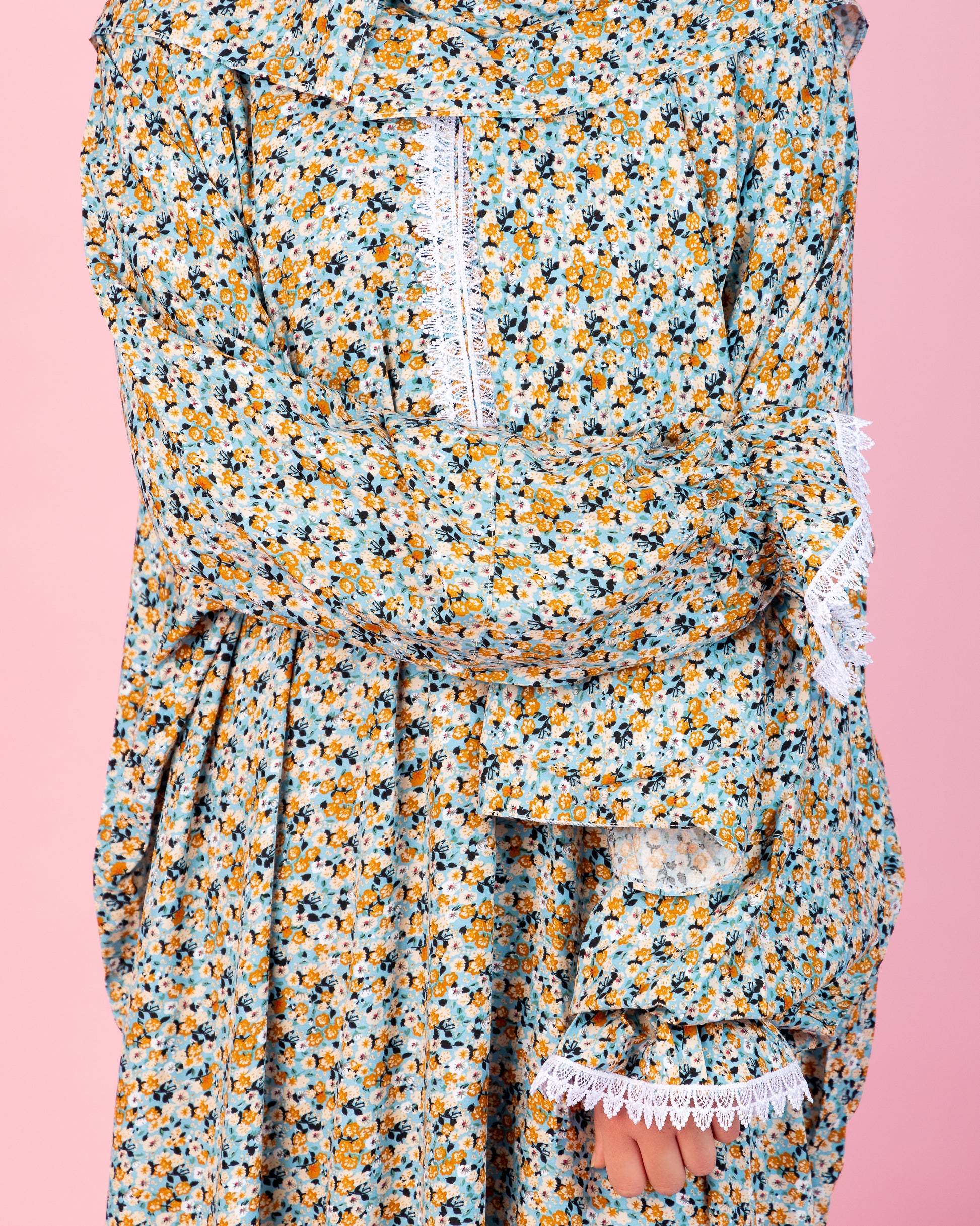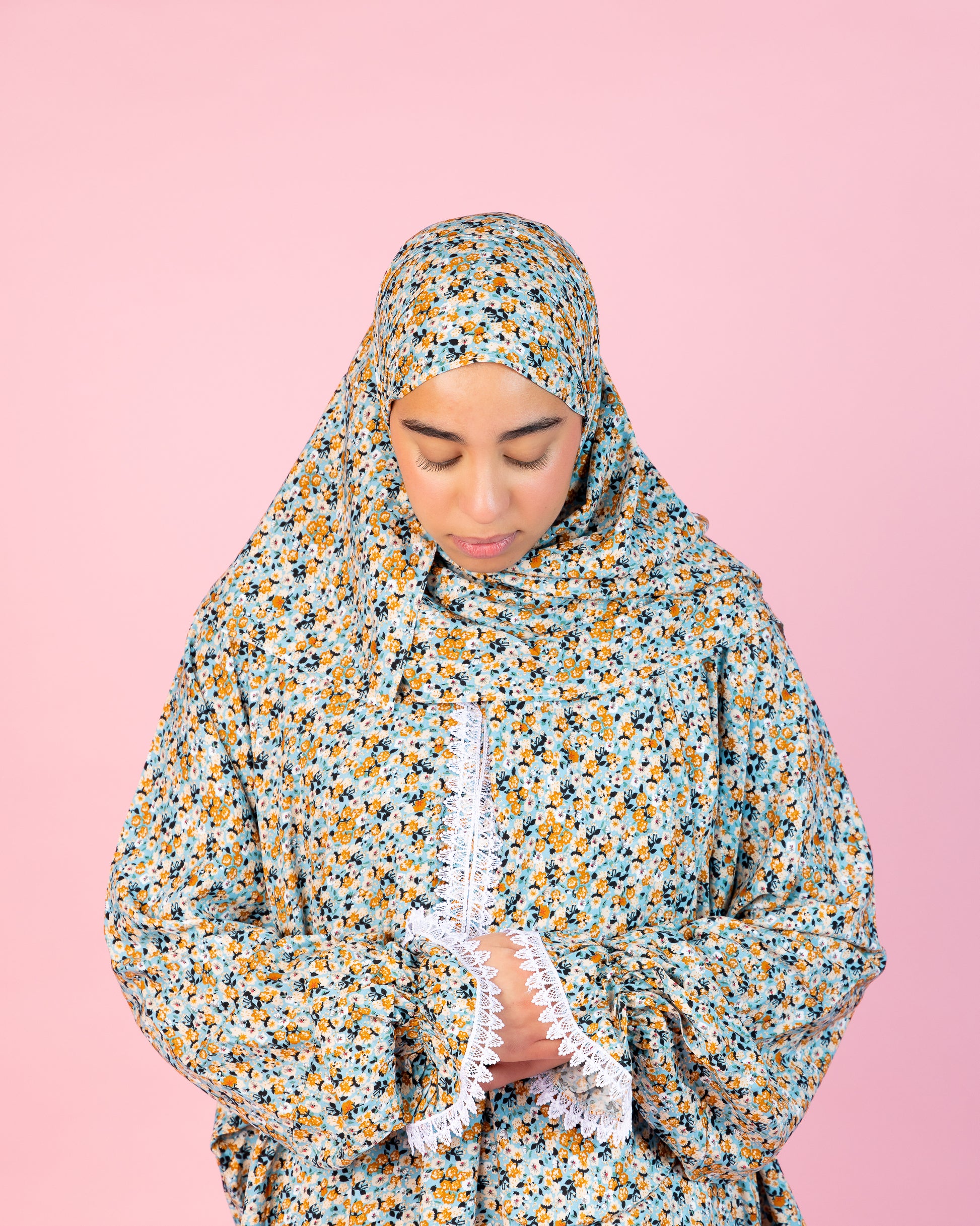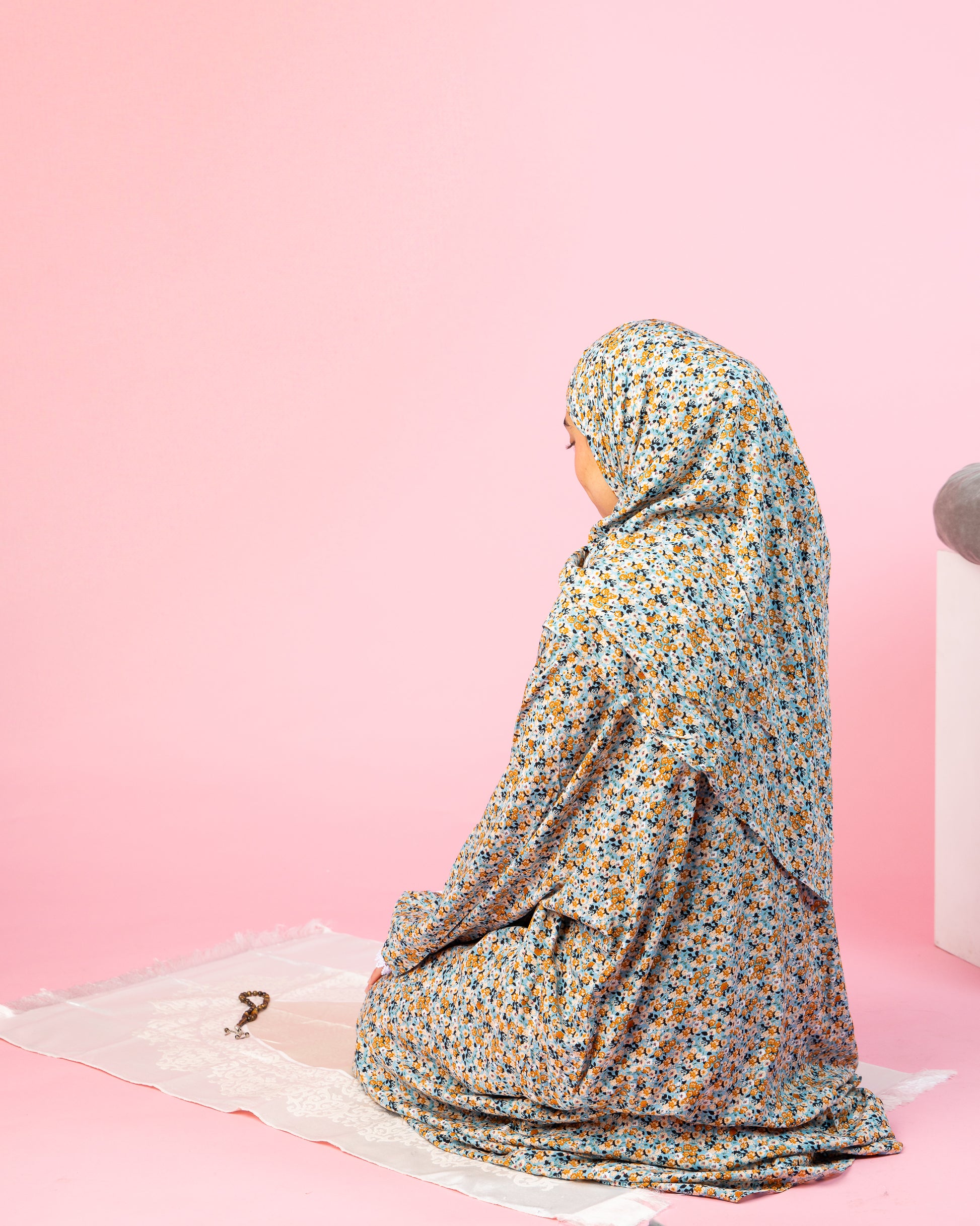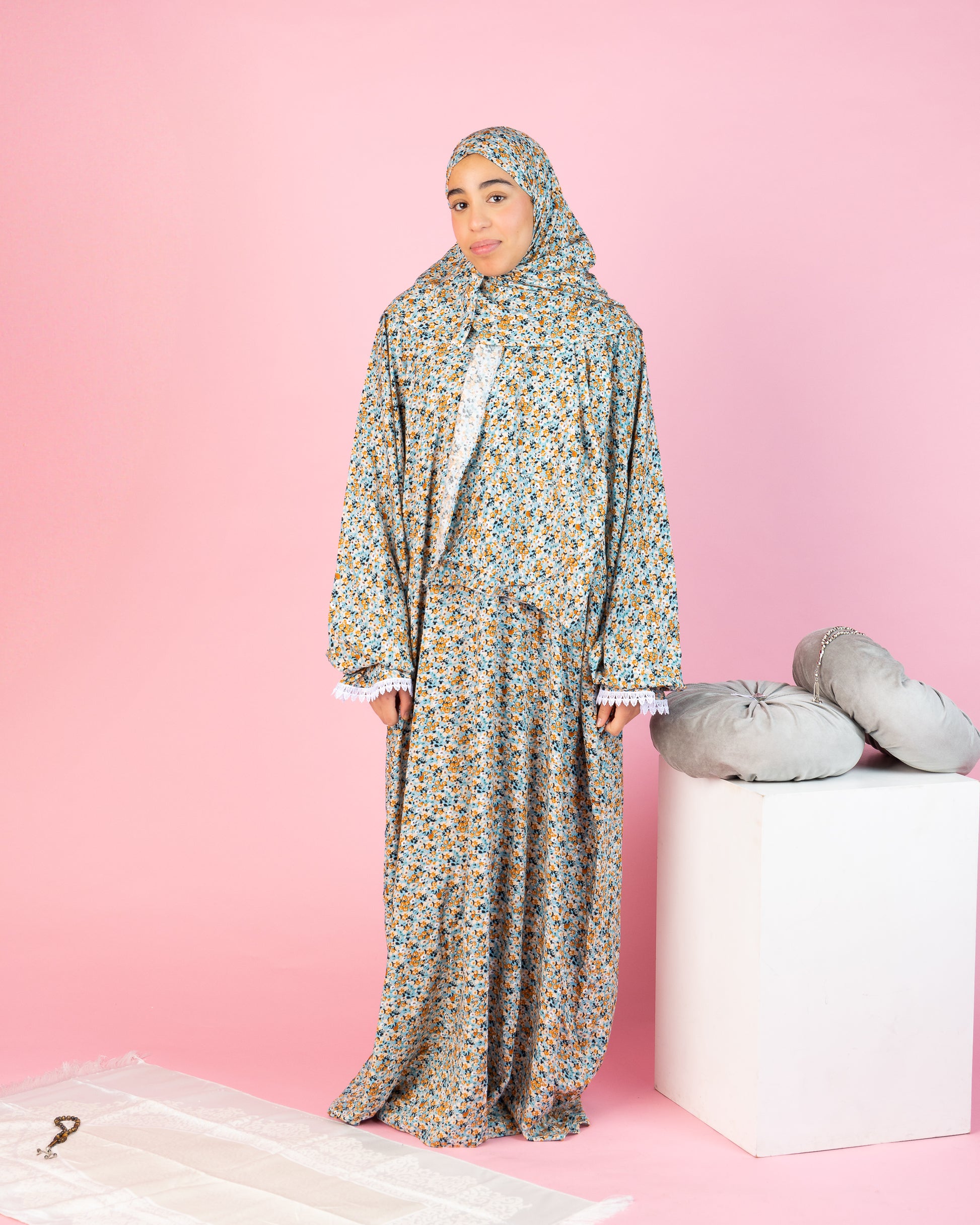 Elevate your spiritual moments with our Floral Serenity Prayer Set, designed for ultimate comfort and modest elegance. This beautifully crafted two-piece attire features a flowing full-length prayer dress and a matching hijab, made from soft, breathable fabric to ensure ease of movement and coverage during prayer.