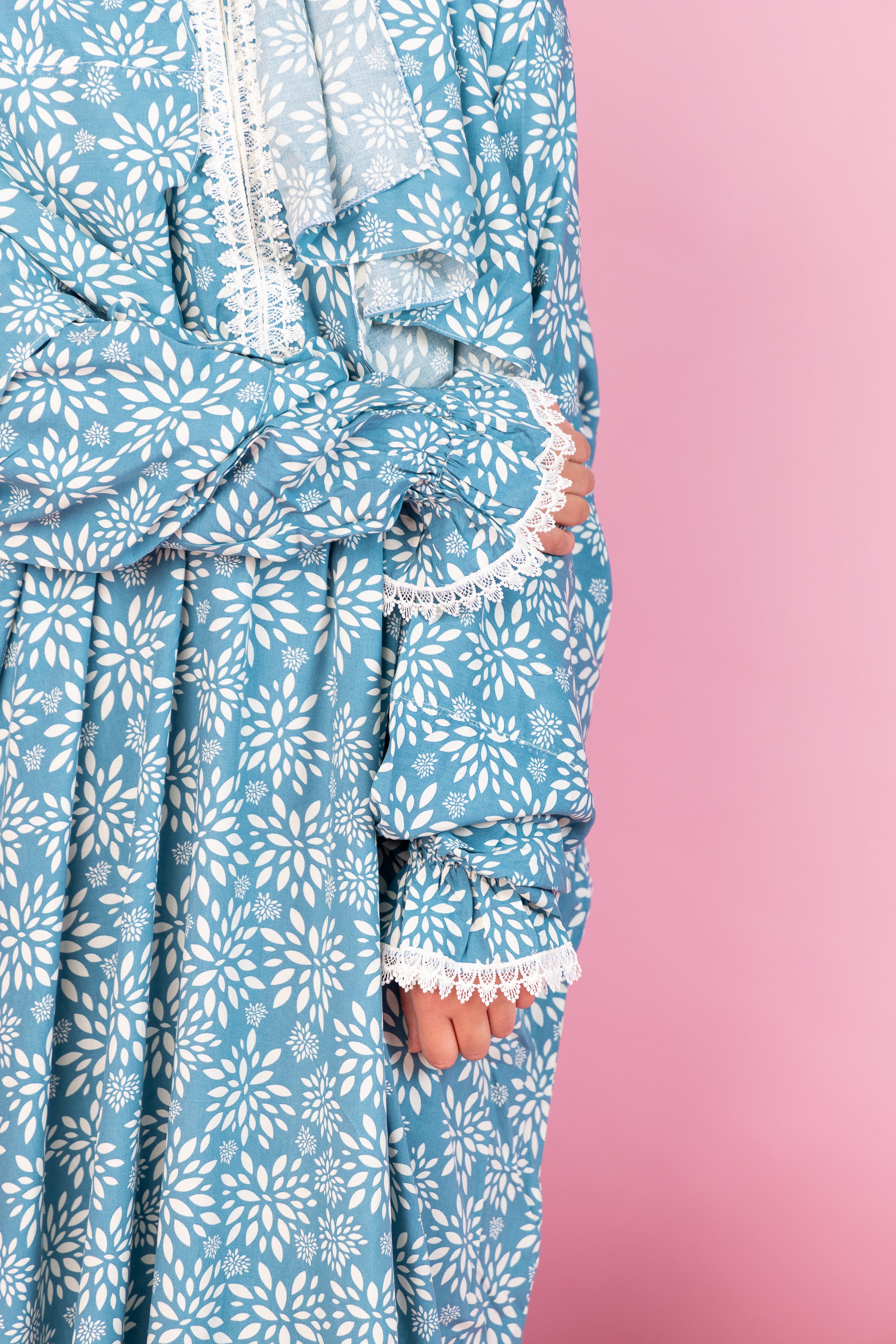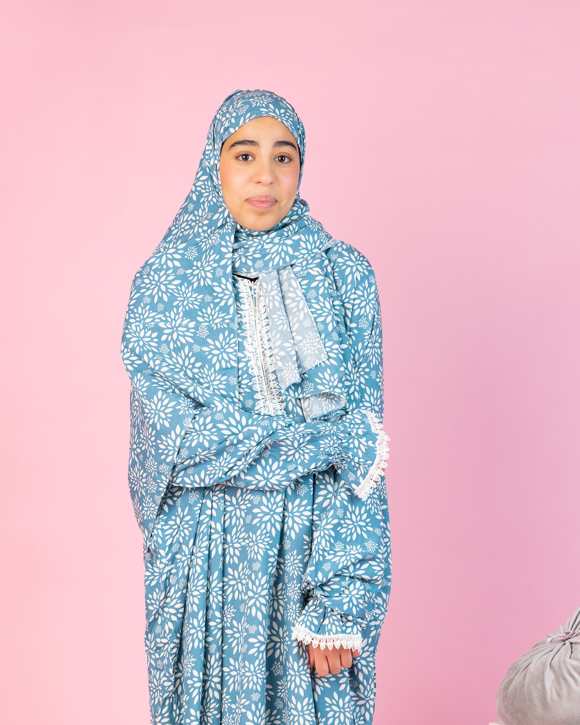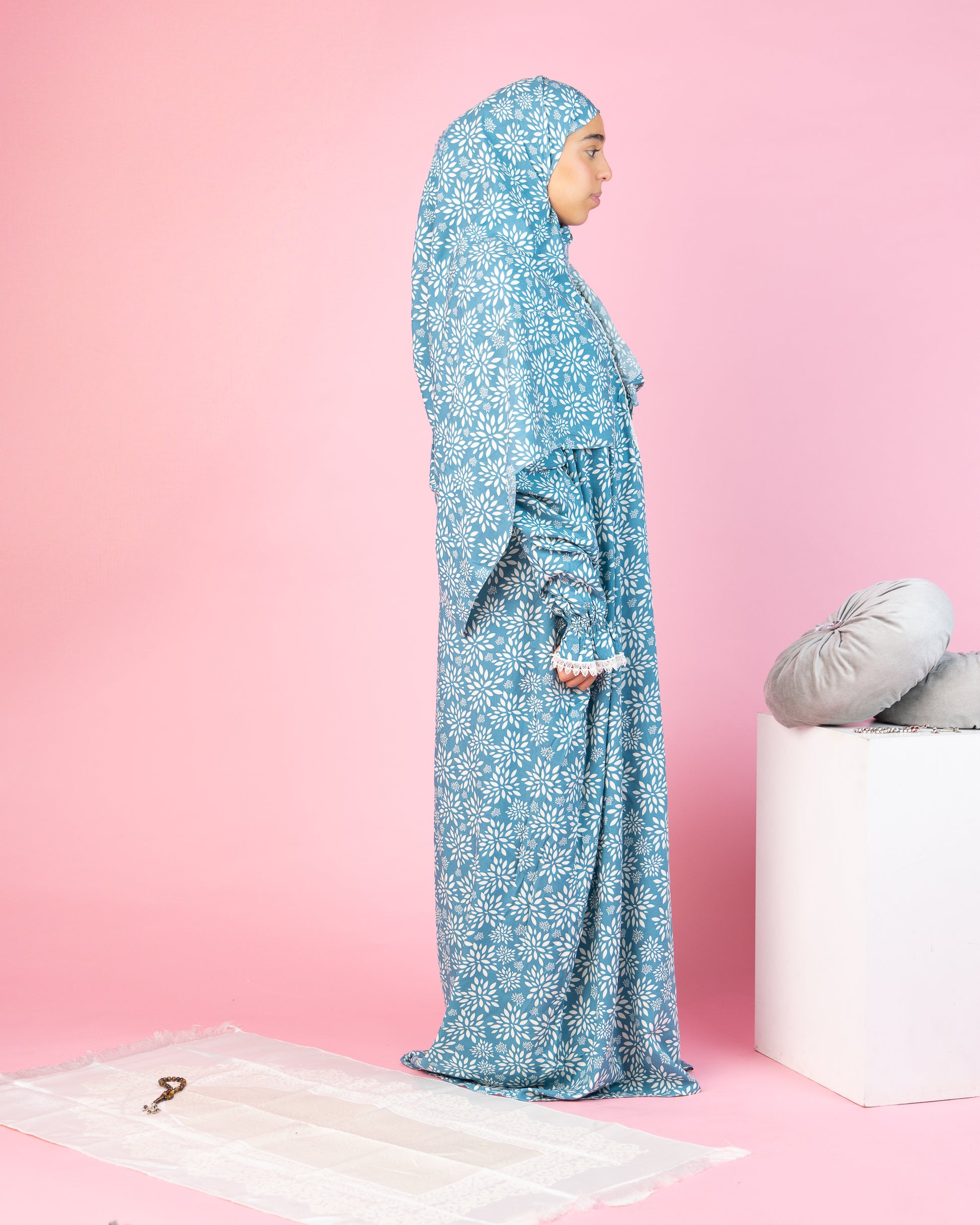 Elevate your spiritual moments with our Floral Serenity Prayer Set, designed for ultimate comfort and modest elegance. This beautifully crafted two-piece attire features a flowing full-length prayer dress and a matching hijab, made from soft, breathable fabric to ensure ease of movement and coverage during prayer.
