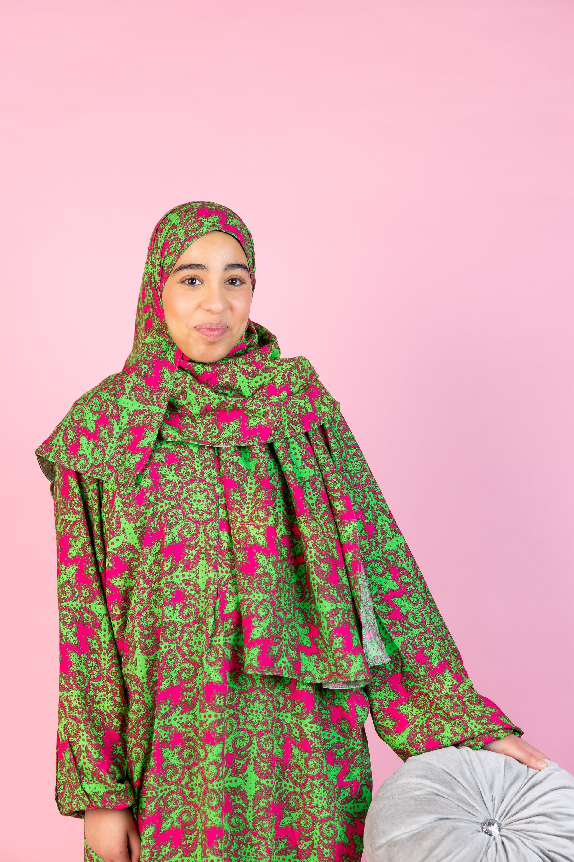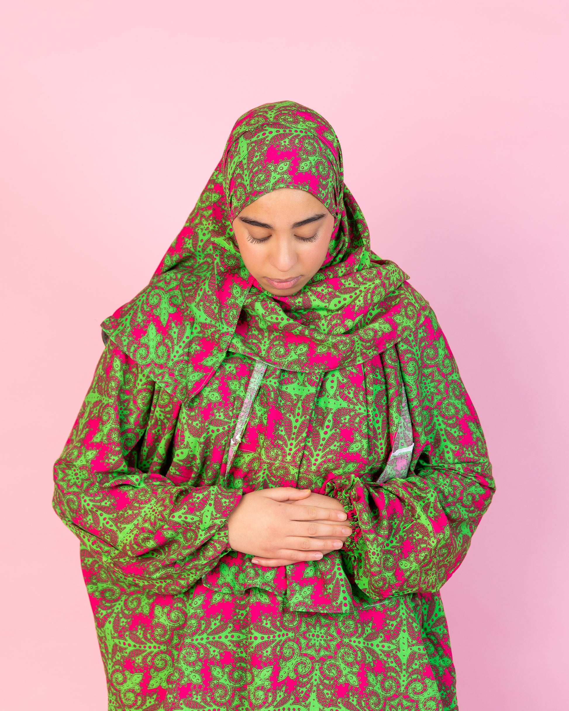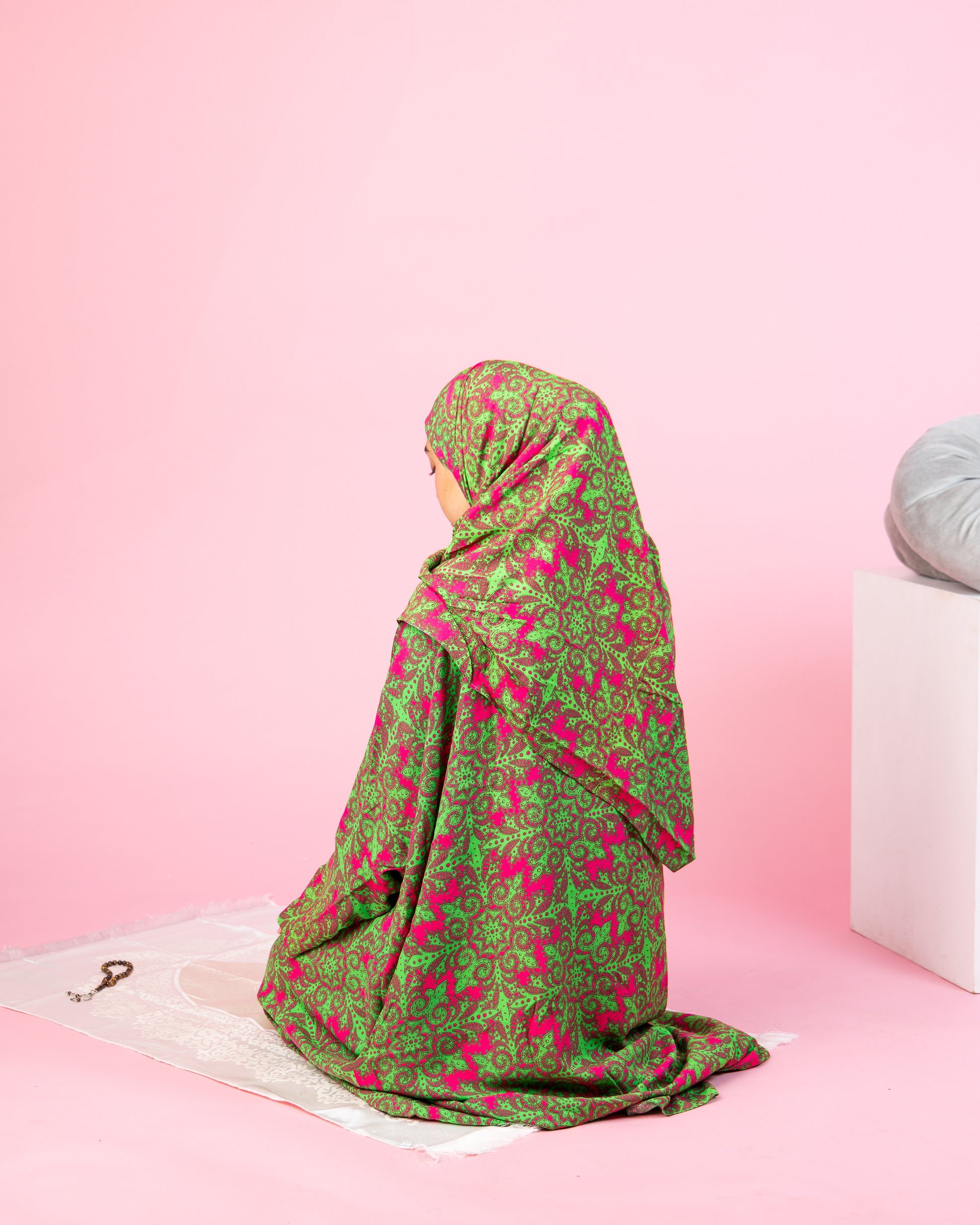 Elevate your spiritual moments with our Floral Serenity Prayer Set, designed for ultimate comfort and modest elegance. This beautifully crafted two-piece attire features a flowing full-length prayer dress and a matching hijab, made from soft, breathable fabric to ensure ease of movement and coverage during prayer.