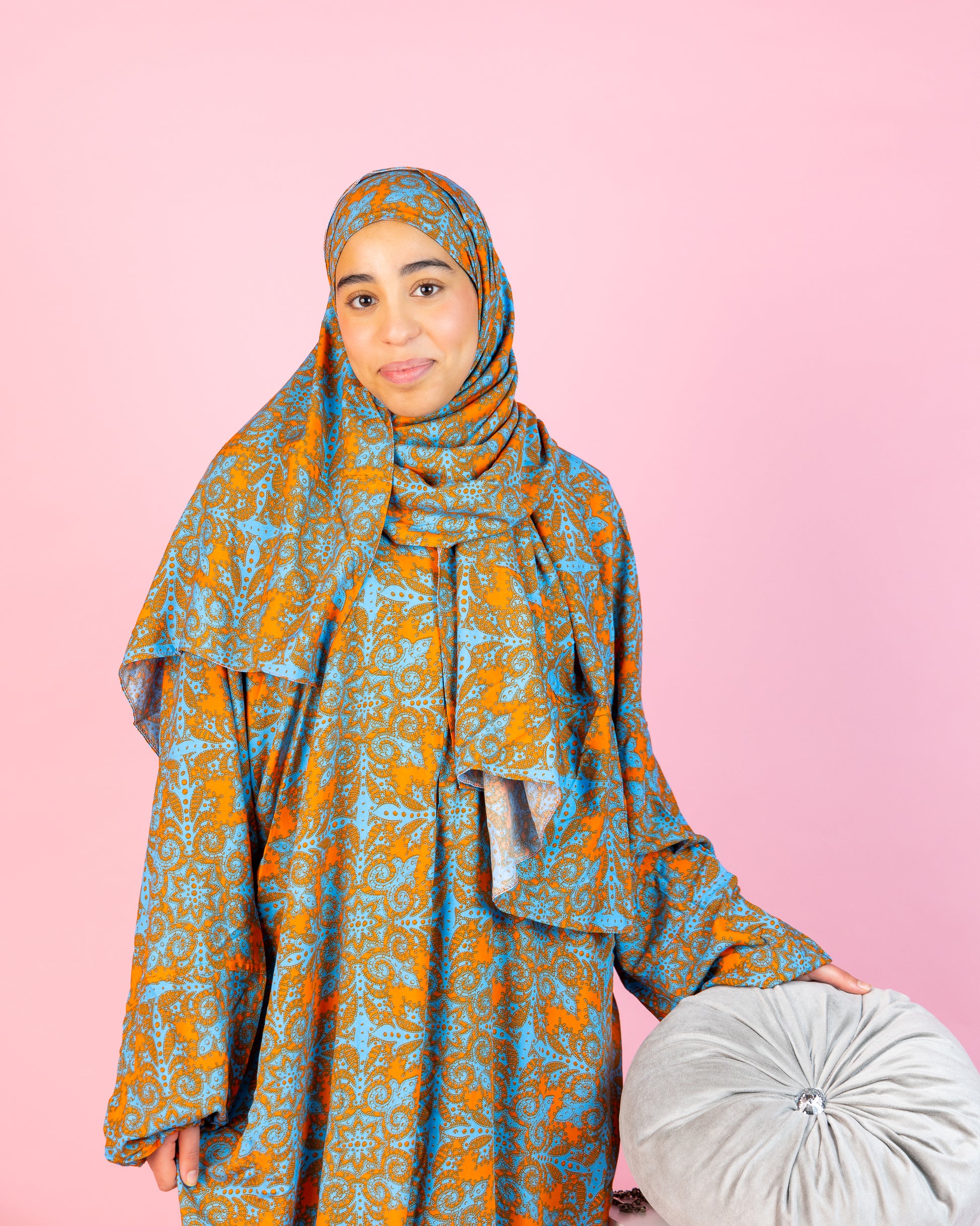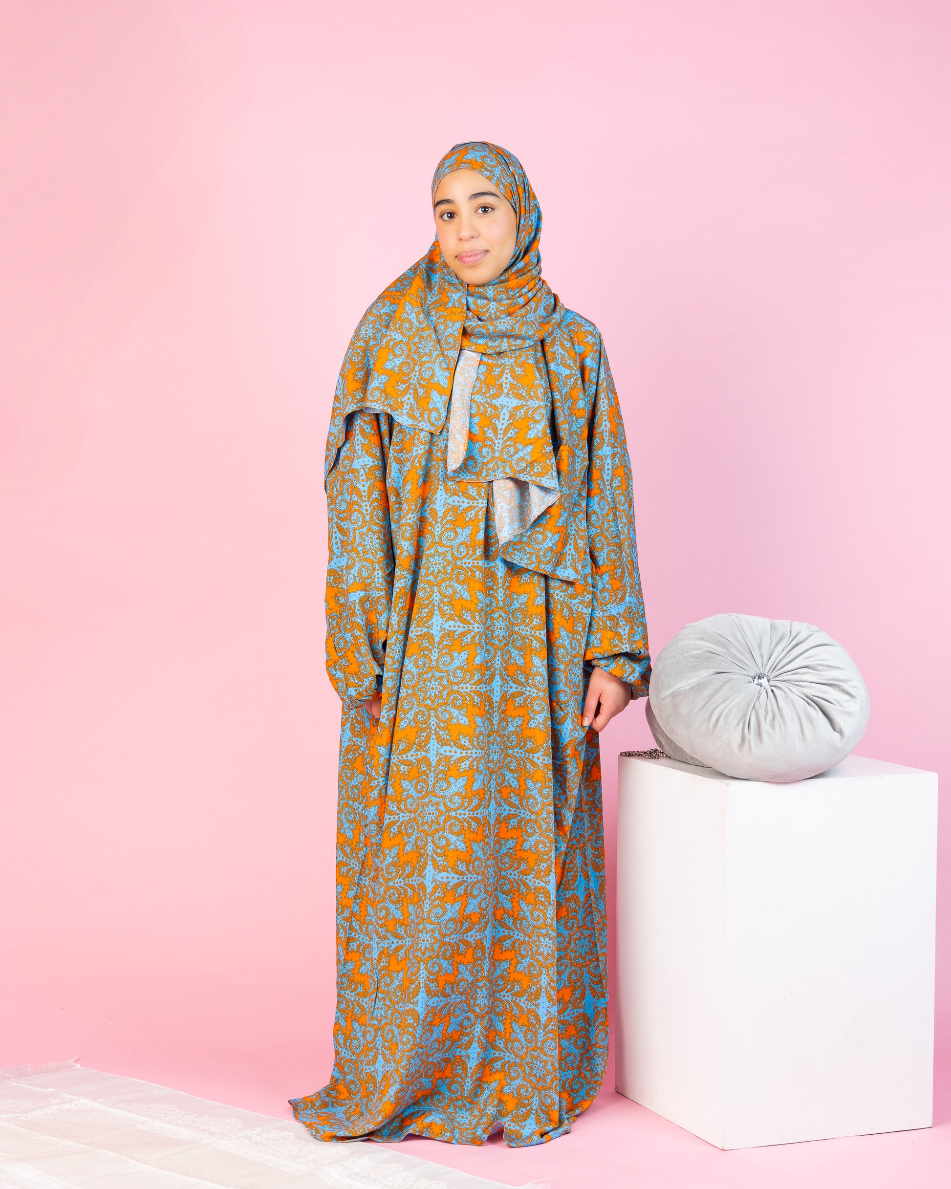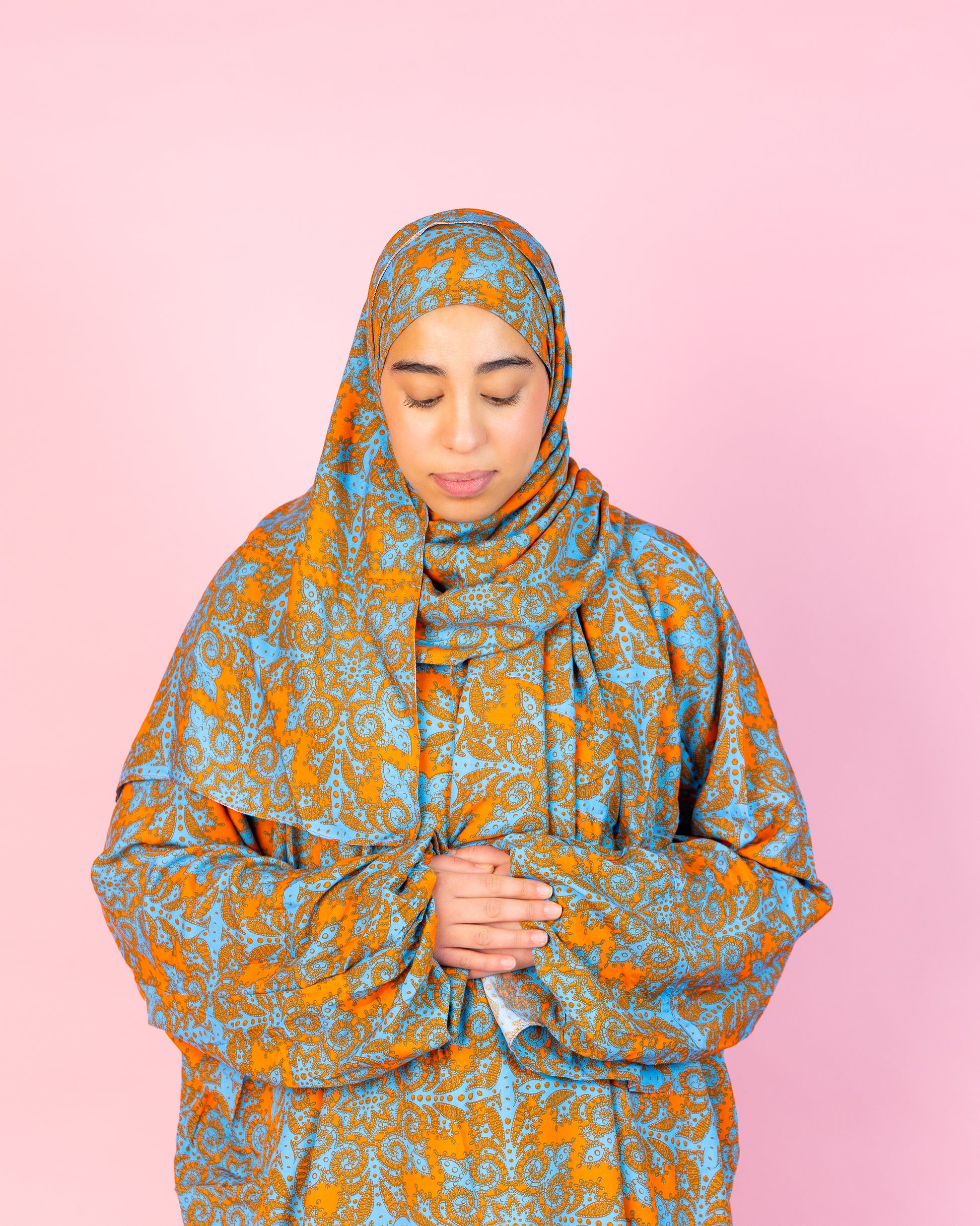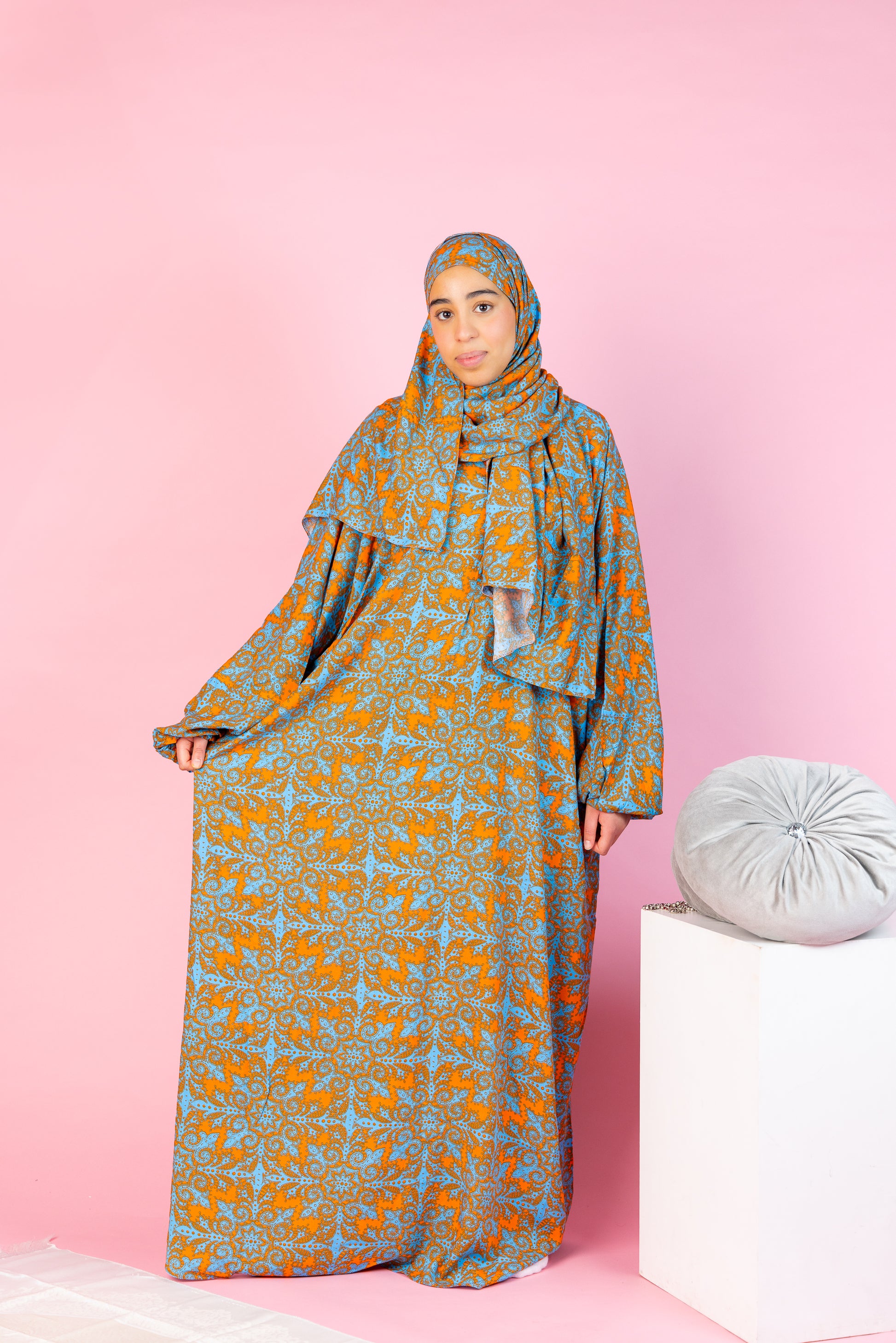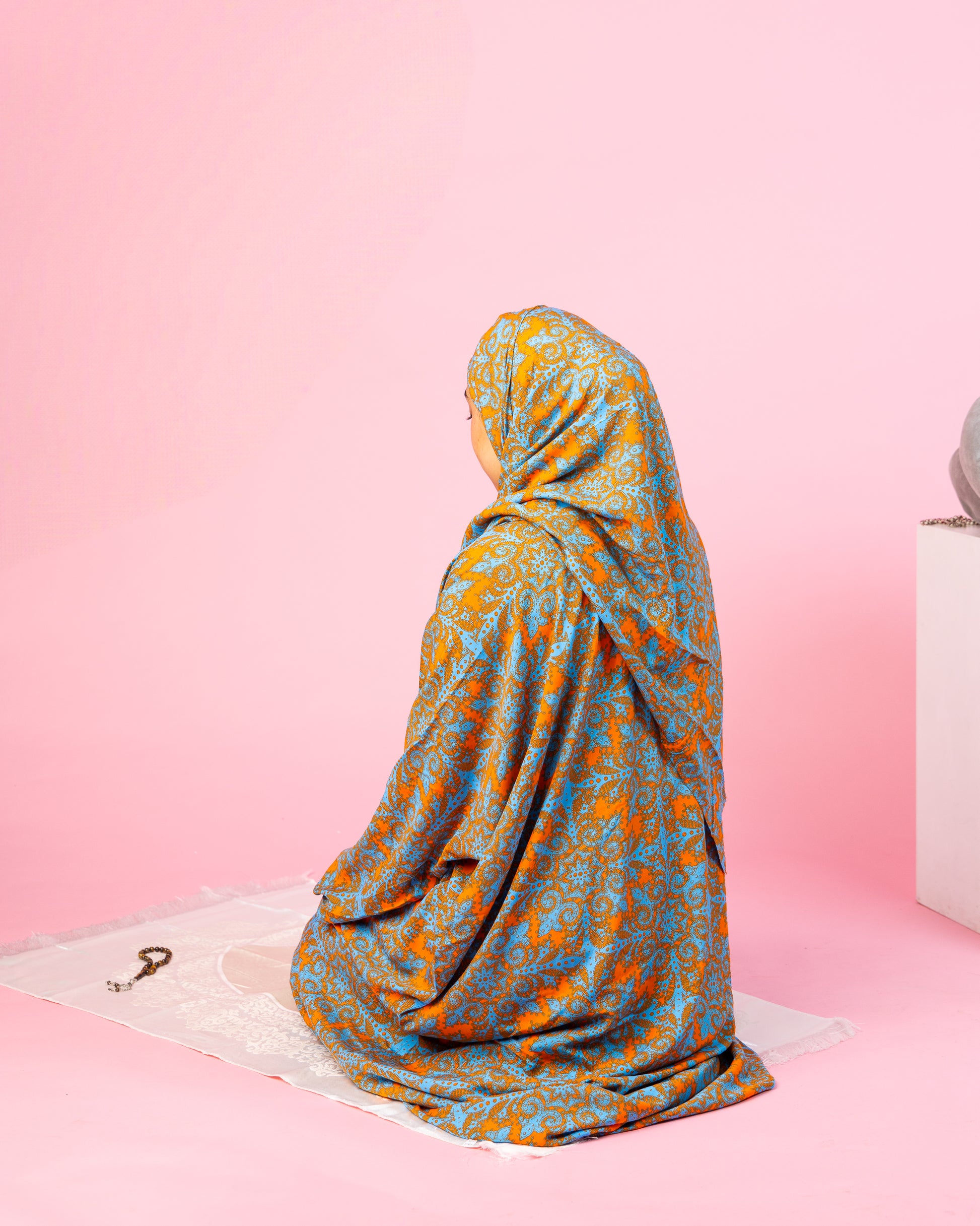 Elevate your spiritual moments with our Floral Serenity Prayer Set, designed for ultimate comfort and modest elegance. This beautifully crafted two-piece attire features a flowing full-length prayer dress and a matching hijab, made from soft, breathable fabric to ensure ease of movement and coverage during prayer.