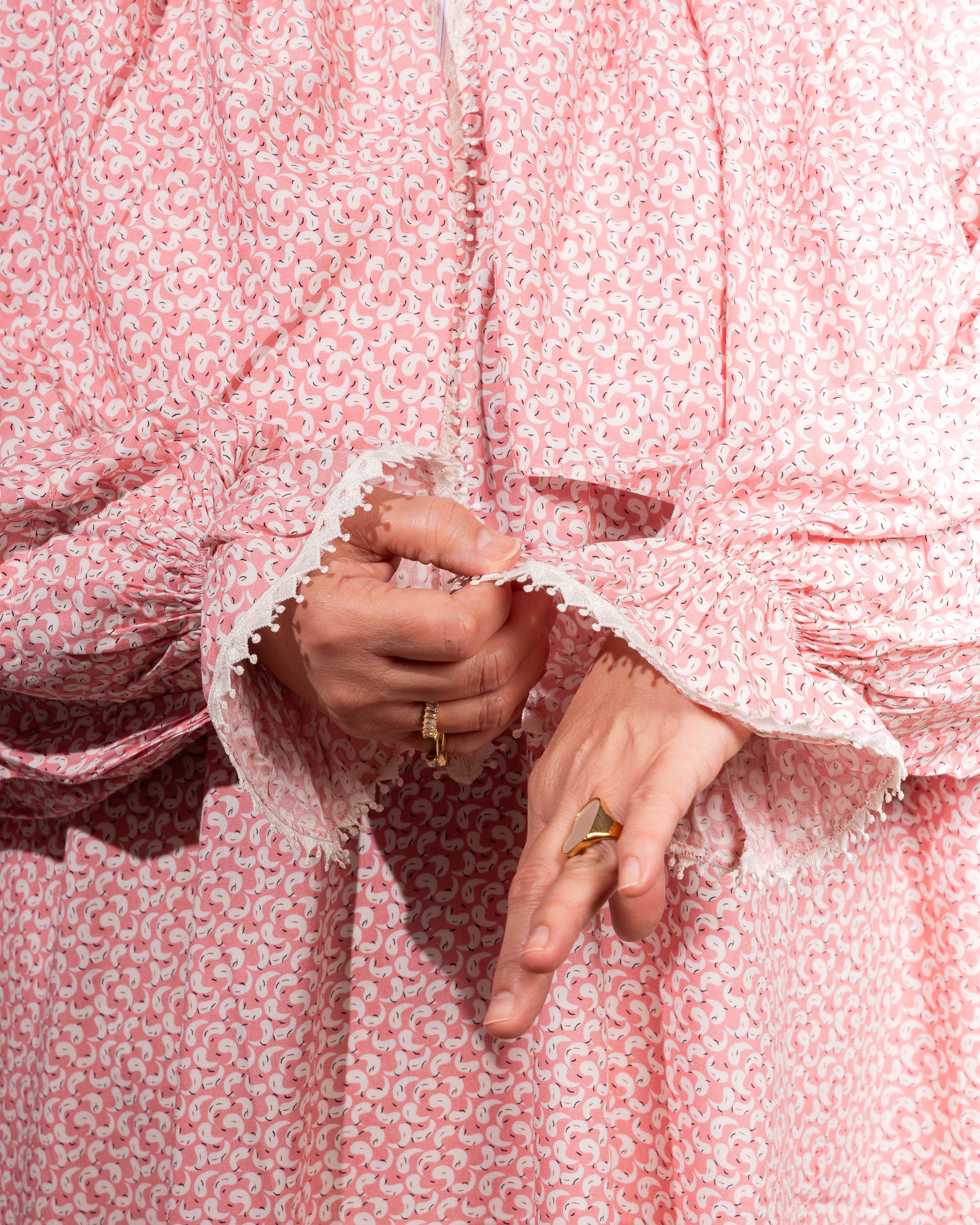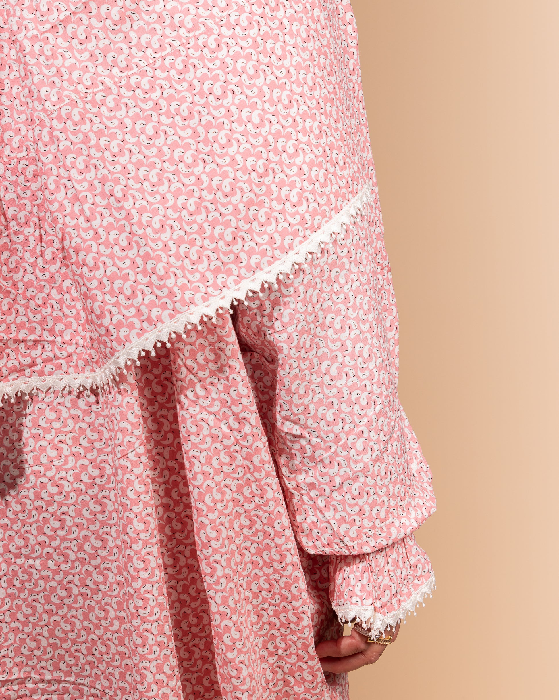 - Cuffed sleeves enhancing the feminine and graceful feel.