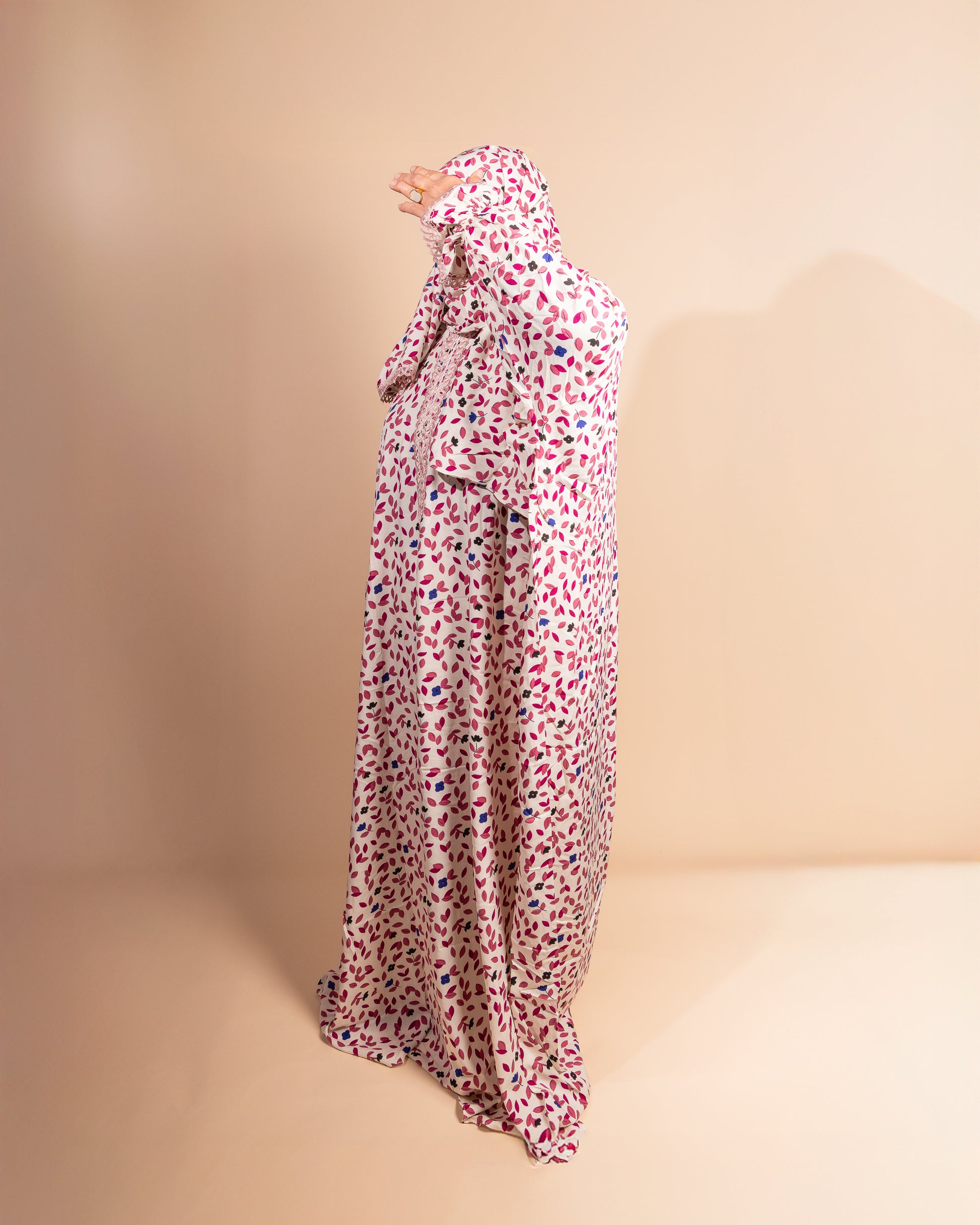 - The matching headscarf is attached to the prayer dress, ensuring a secure and effortless fit without the need for pins or adjustments.